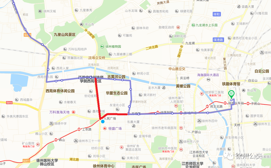 5、616路:由徐礦城東發(fā)車后,行駛至蘇堤北路與黃河南路交叉口后左轉進入黃河南路,經黃河南路、西安北路,恢復原線路。