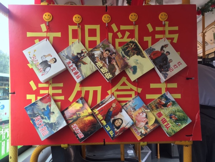 11路286車駕駛員曹瑞國,是一名老黨員,每逢大小節(jié)日,他都會(huì)自掏腰包提前購買一些小禮品,送給當(dāng)天乘車的市民。今年為慶祝黨的生日,曹瑞國布置了特色車廂:在車廂掛100面紅旗,在車窗上張貼英雄人物事跡海報(bào),尤其是車廂里的抗日小人書讀書角贏得了乘客贊譽(yù)。