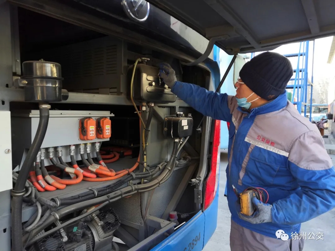 針對氣溫驟降,集團積極做好車輛機務(wù)保障工作,提前對柴油車輛及安裝燃油水暖加熱系統(tǒng)的純電動車輛更換低標號柴油,防止出現(xiàn)結(jié)臘現(xiàn)象;做好管路防凍工作,對車輛的氣路管路、儲氣筒徹底放氣、放水;為了預(yù)防車輪制動蹄片與制動鼓、輪胎與地面之間出現(xiàn)冰凍現(xiàn)象,各單位要求駕駛員在出車前提前開啟車載空調(diào)暖風設(shè)備,收車后做好車輛駐車停放工作。同時,在每個車場安排專人值守并做好修理人員、充電工的防寒保暖工作。
