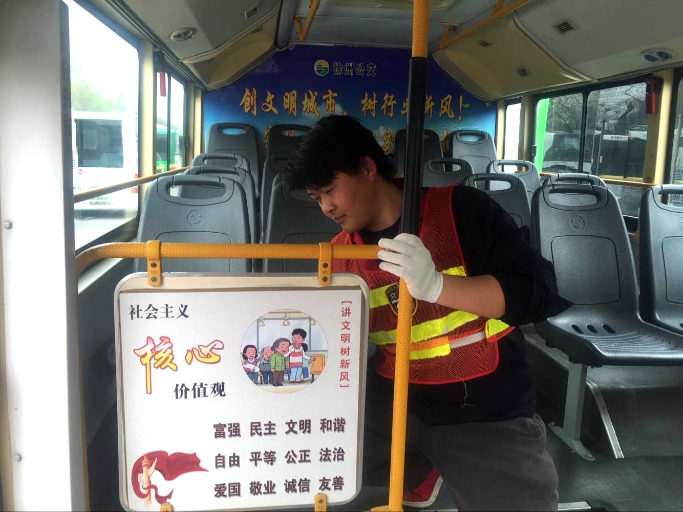 每天早上七點(diǎn)我們準(zhǔn)時(shí)到崗,顧不上吃飯便馬不停蹄地投入到工作中去,有時(shí)利用等車(chē)的空隙吃幾口飯,看到車(chē)輛進(jìn)入車(chē)場(chǎng)便立刻拿起工具開(kāi)始干活,幾臺(tái)車(chē)打掃下來(lái),我們的肩膀、胳膊已經(jīng)酸疼,但是我們沒(méi)有停歇,而是互相鼓勵(lì),繼續(xù)擼起袖子把活兒干!有時(shí)遇到下雨、下雪等特殊情況,我們都會(huì)提前來(lái)到車(chē)場(chǎng),趁著還沒(méi)發(fā)車(chē),集中對(duì)車(chē)輛衛(wèi)生進(jìn)行突擊,為乘客營(yíng)造干凈、舒適的乘車(chē)環(huán)境。