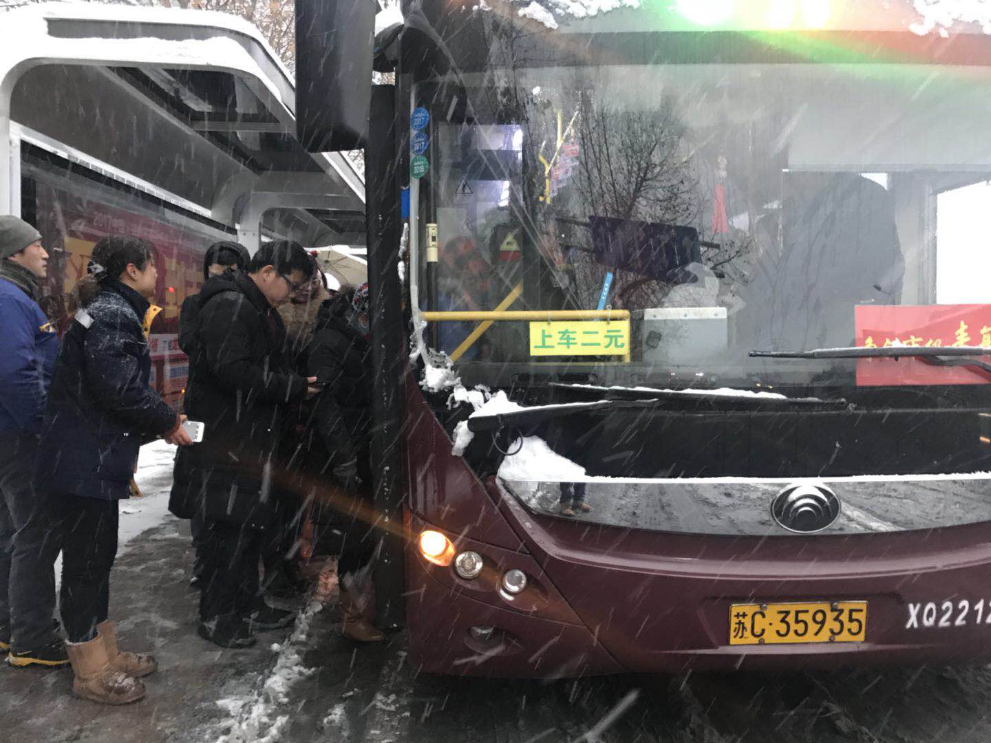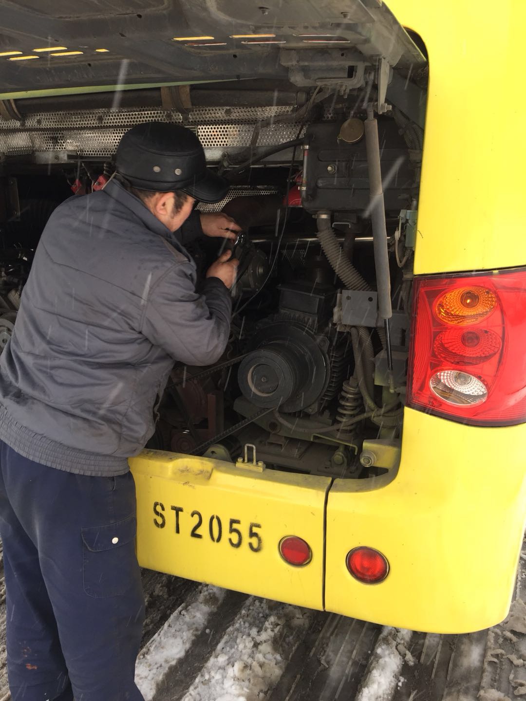 為保證冰雪嚴(yán)寒天氣公交車(chē)運(yùn)力正常,公司提前對(duì)2300余輛公交車(chē)進(jìn)行了安全性能的全面普查及換季保養(yǎng)作業(yè)項(xiàng)目,進(jìn)一步加強(qiáng)車(chē)輛的日常維護(hù)及“三檢”,嚴(yán)格執(zhí)行維保規(guī)范,確保車(chē)輛設(shè)備的防凍液冰點(diǎn)值不低于-15℃,并提前更換了-10號(hào)柴油,防止燃?xì)廛?chē)輛冰堵。修理人員冒著風(fēng)雪,手凍得通紅仍堅(jiān)持在現(xiàn)場(chǎng)搶修車(chē)輛;智能調(diào)度平臺(tái)利用3G視頻實(shí)時(shí)監(jiān)控線路運(yùn)營(yíng)情況,利用車(chē)載語(yǔ)音不斷播放安全提示,做好雪天行車(chē)安排;公交出租450輛出租車(chē)全部出車(chē)……4日晚,市區(qū)雪深已達(dá)375px,氣溫-7℃。大雪造成高鐵晚點(diǎn)6小時(shí),10路線立即增派7輛加班車(chē)增加24個(gè)班次,直至5日凌晨4:07最后一班車(chē)發(fā)車(chē),堅(jiān)決不滯留一名乘客,全力保障了雪天市民的安全出行。