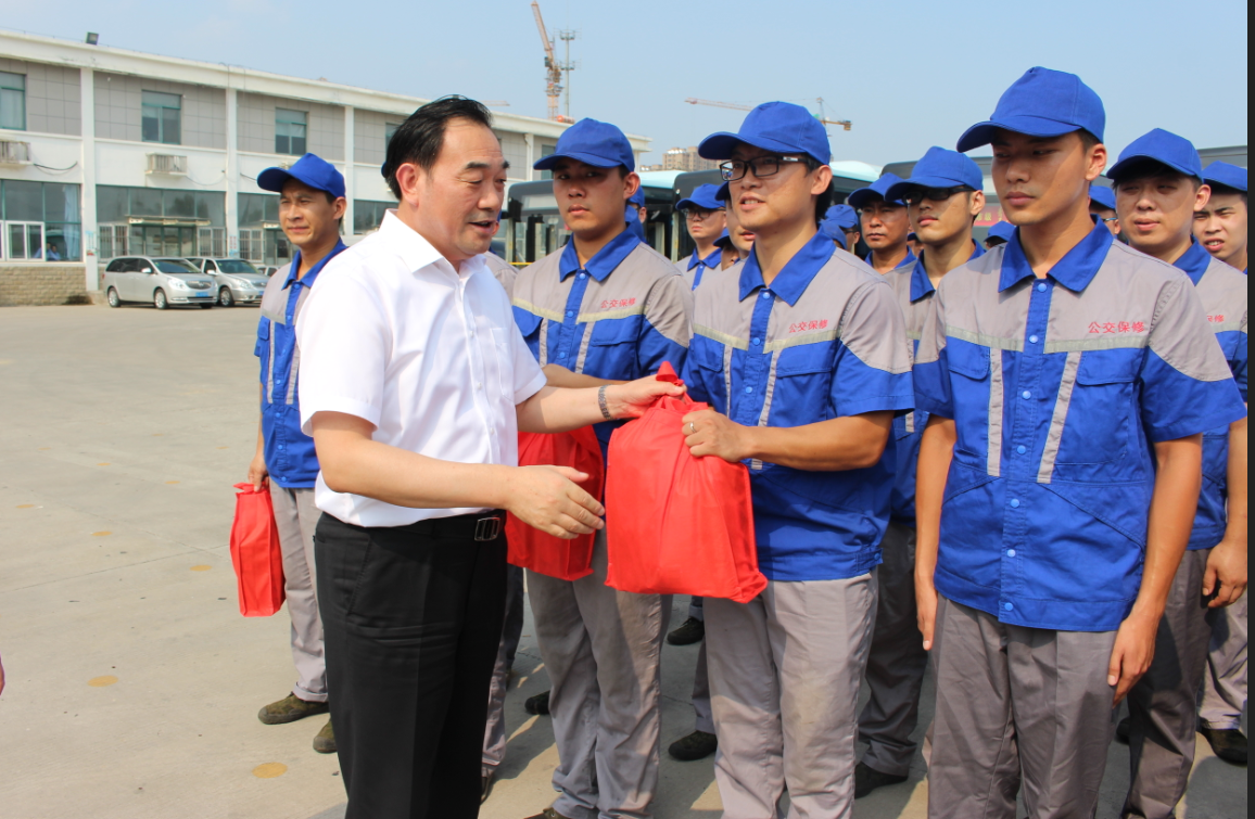 今夏持續(xù)高溫,酷熱難當(dāng),8月9日下午,徐州市委書(shū)記、市人大常委會(huì)主任周鐵根,市委常委、秘書(shū)長(zhǎng)吳新福,市委常委、組織部長(zhǎng)季培東,市人大常委副主任、市總工會(huì)主席束志明等一行,頂著炎炎烈日,冒著36攝氏度的高溫,來(lái)到公交公司郭莊車場(chǎng)看望慰問(wèn)在高溫下依然堅(jiān)守崗位的公交員工,給大家送來(lái)清涼、帶來(lái)關(guān)心,并代表市委、市人大、市政府,向在酷暑天中依然奮戰(zhàn)一線、堅(jiān)守崗位,戰(zhàn)高溫斗酷暑的公交員工表示衷心感謝,感謝大家的辛勤勞動(dòng)和無(wú)私奉獻(xiàn)、吃苦耐勞的精神。云龍區(qū)區(qū)委、市交通運(yùn)輸局黨委書(shū)記、局長(zhǎng)蔡前鋒,公交公司董事長(zhǎng)、總經(jīng)理杜紅軍參加了慰問(wèn)活動(dòng)。