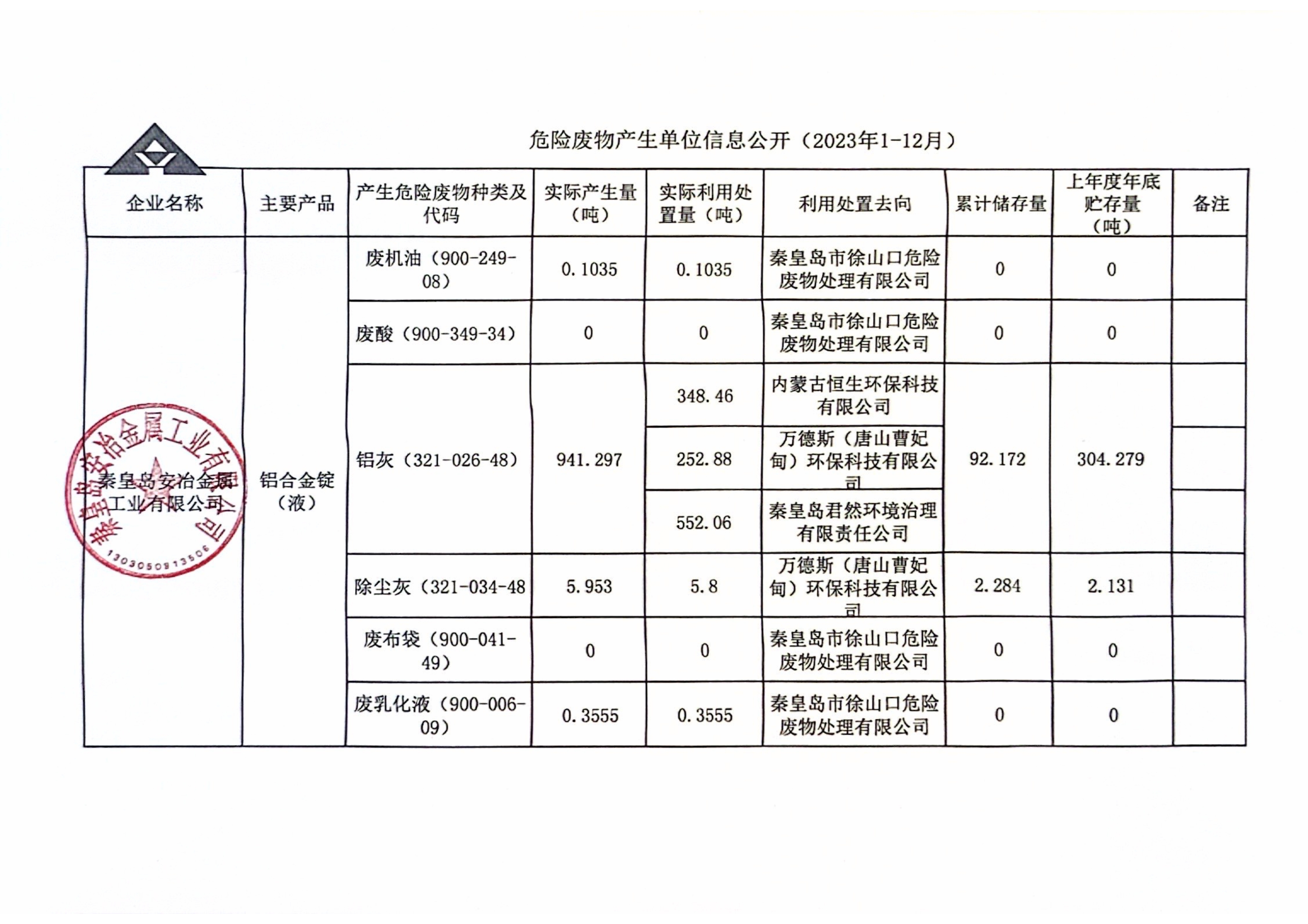 當(dāng)前位置:首頁-資訊中心-危險(xiǎn)廢物產(chǎn)生單位信息公開(2023年1-12月)